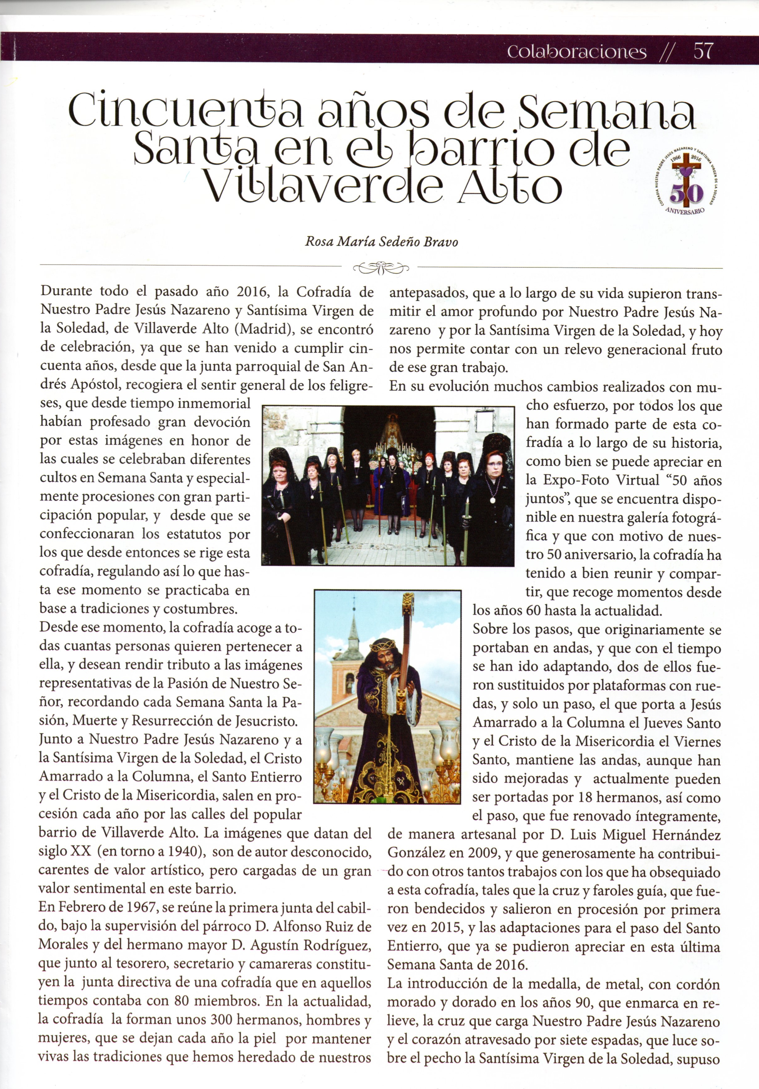 Se hablo de la Cofradía Nuestro Padre Jesús Nazareno y Santísima Virgen de la Soledad y de nuestro 50 Aniversario en:
