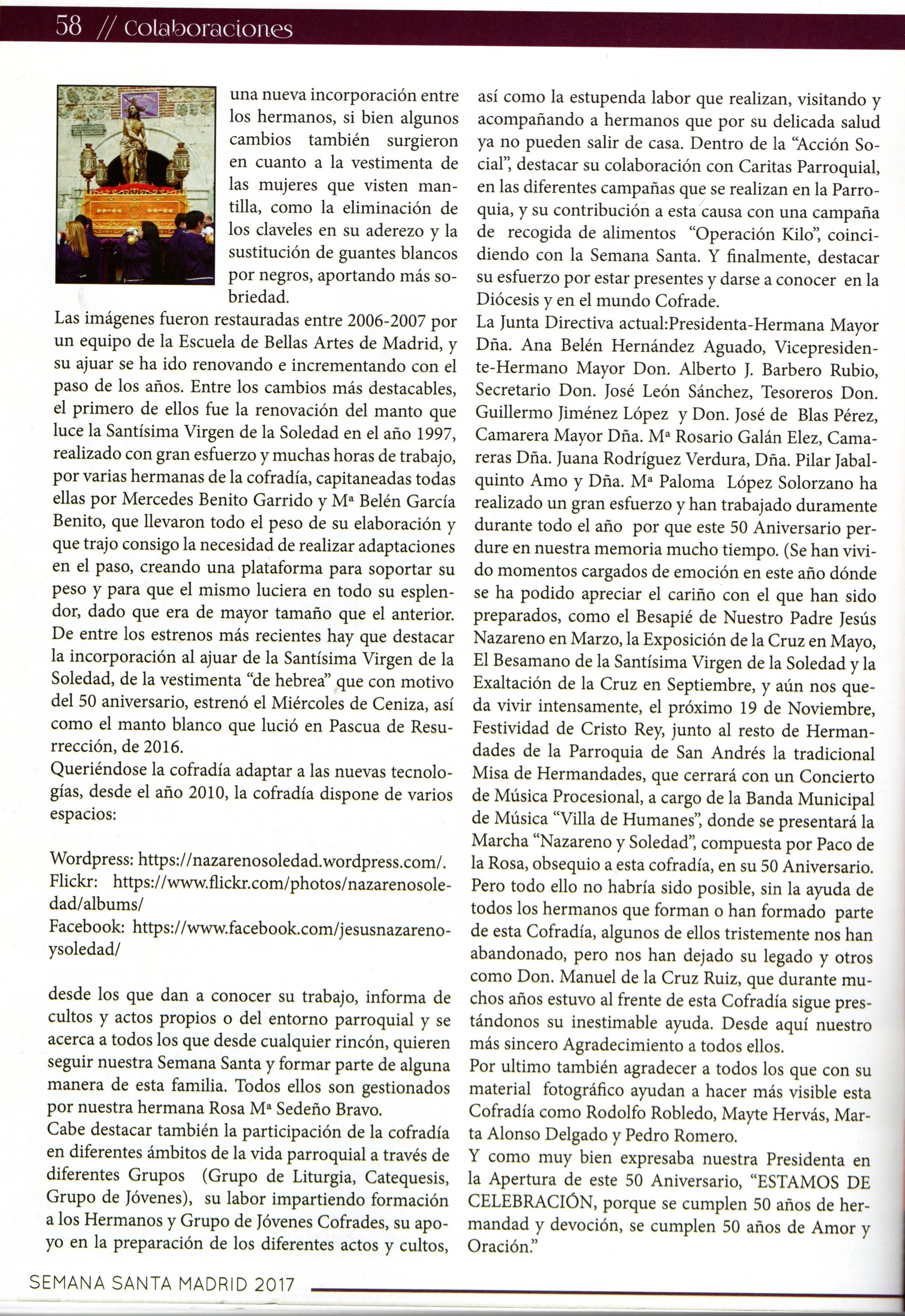 Revista SEMANA SANTA. MADRID 2017. AÑO VI/Nº 6; Edita: Academia para la Investigación de la Semana Santa de Madrid. Colaborador Fotográfico: Rodolfo Robledo.