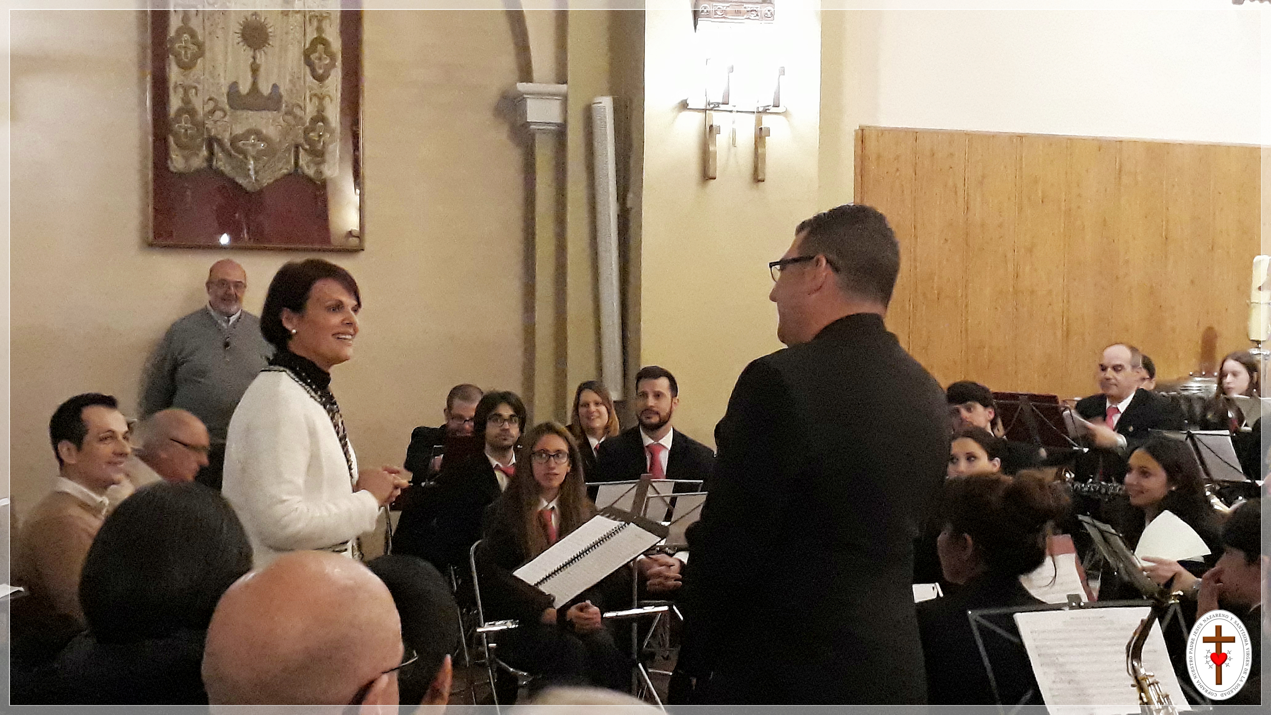 En la presentación del Concierto, nuestra Presidenta-Hermana Mayor, hizo un recorrido por la trayectoria tanto de la Banda, que procesiona con nuestra Cofradía desde hace nueve años, como de su Director Francisco de la Rosa, gran amigo de esta Cofradía y compositor entre otras Himnos, del Himno “Nazareno y Soledad” que nos acompaña cada año, desde su presentación oficial en Noviembre de 2016.