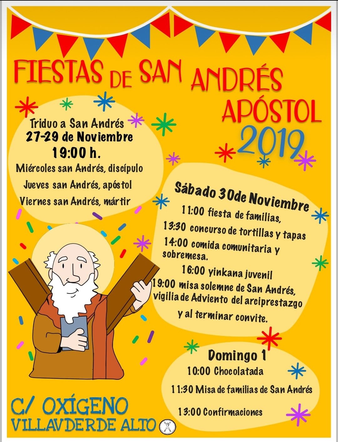 25 de noviembre de 2019 Con motivo de la Festividad de San Andrés Apóstol, titular de nuestra Parroquia, se han organizado una serie de actividades para tod@s. ¡Os animamos a participar!.