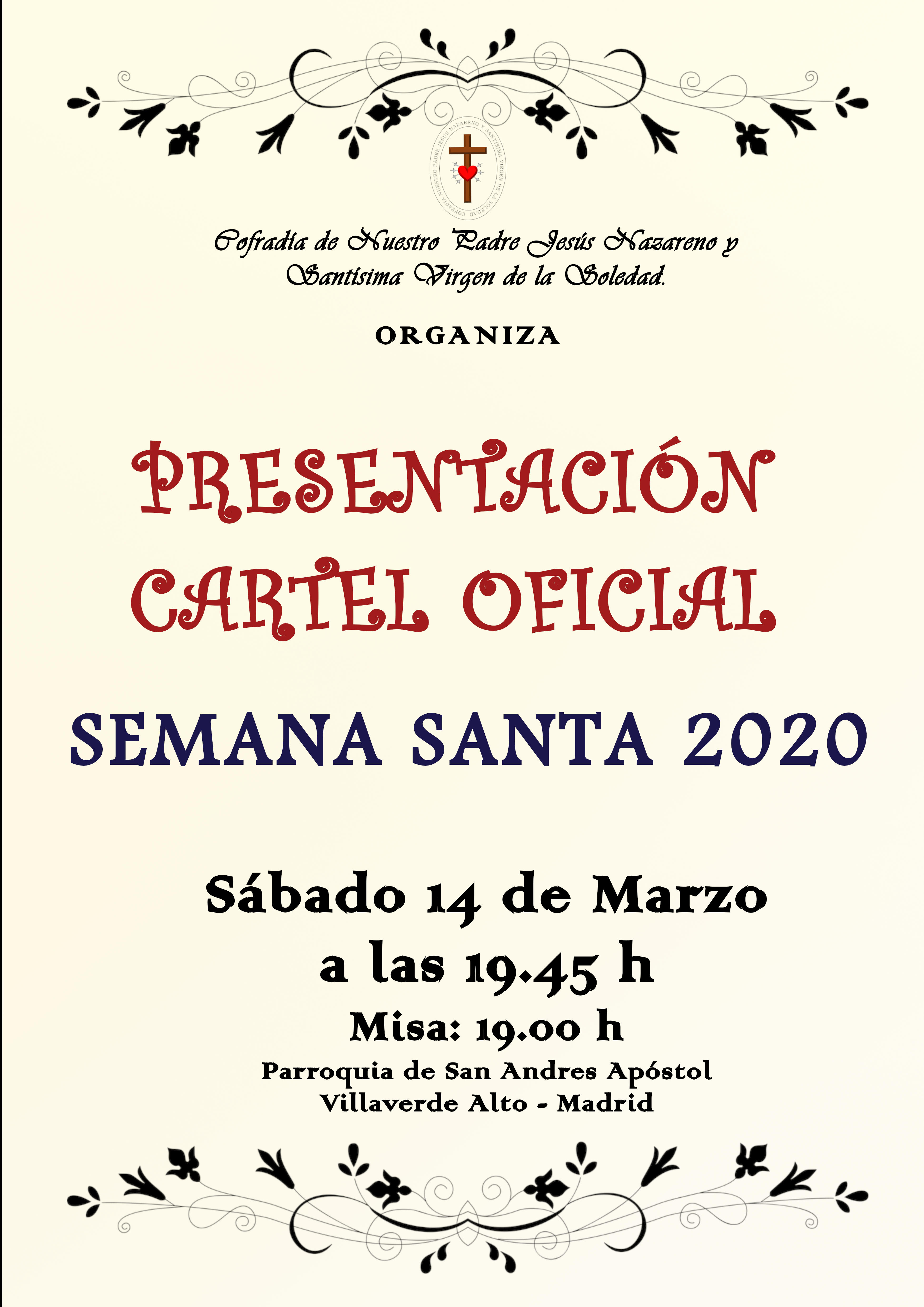 Todo ello tendrá lugar en la Parroquia de San Andrés Apóstol (Villaverde Alto-Madrid), tendremos la Misa a las 19.00 horas y a continuación el Pregón y la Presentación del Cartel.