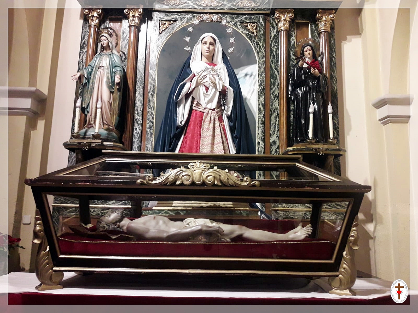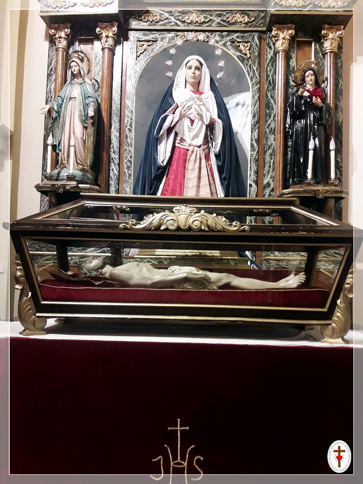 Desde hoy y durante toda la CUARESMA, se podrá contemplar esta disposición de las imágenes, donde el Santo Entierro, se encuentra a los pies de la Santísima Virgen,  más cerca de su madre y más  accesible a todos.