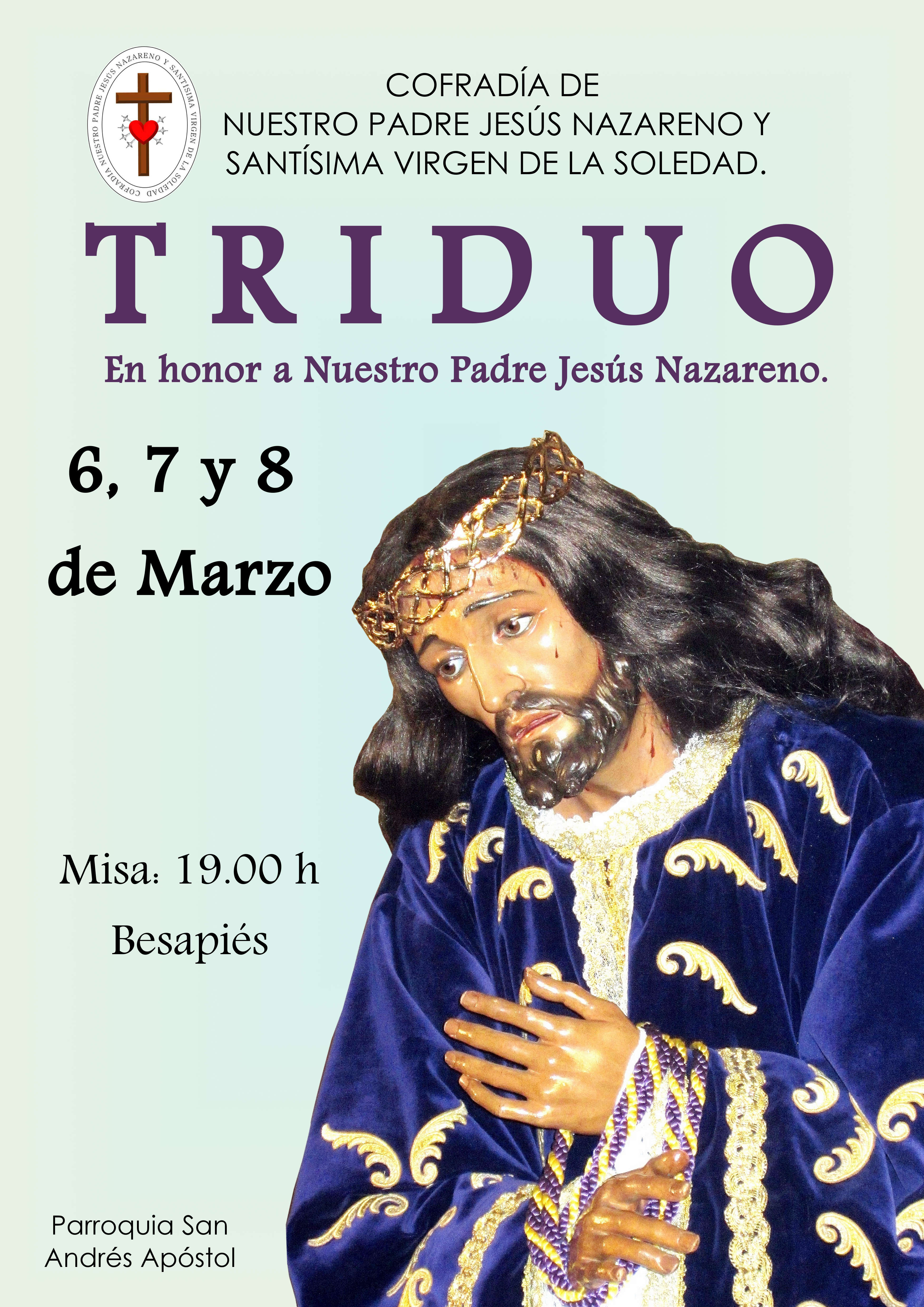 Os recordamos que el próximo viernes 6 de Marzo, da comienzo el TRIDUO en honor a Nuestro Padre Jesús Nazareno.
