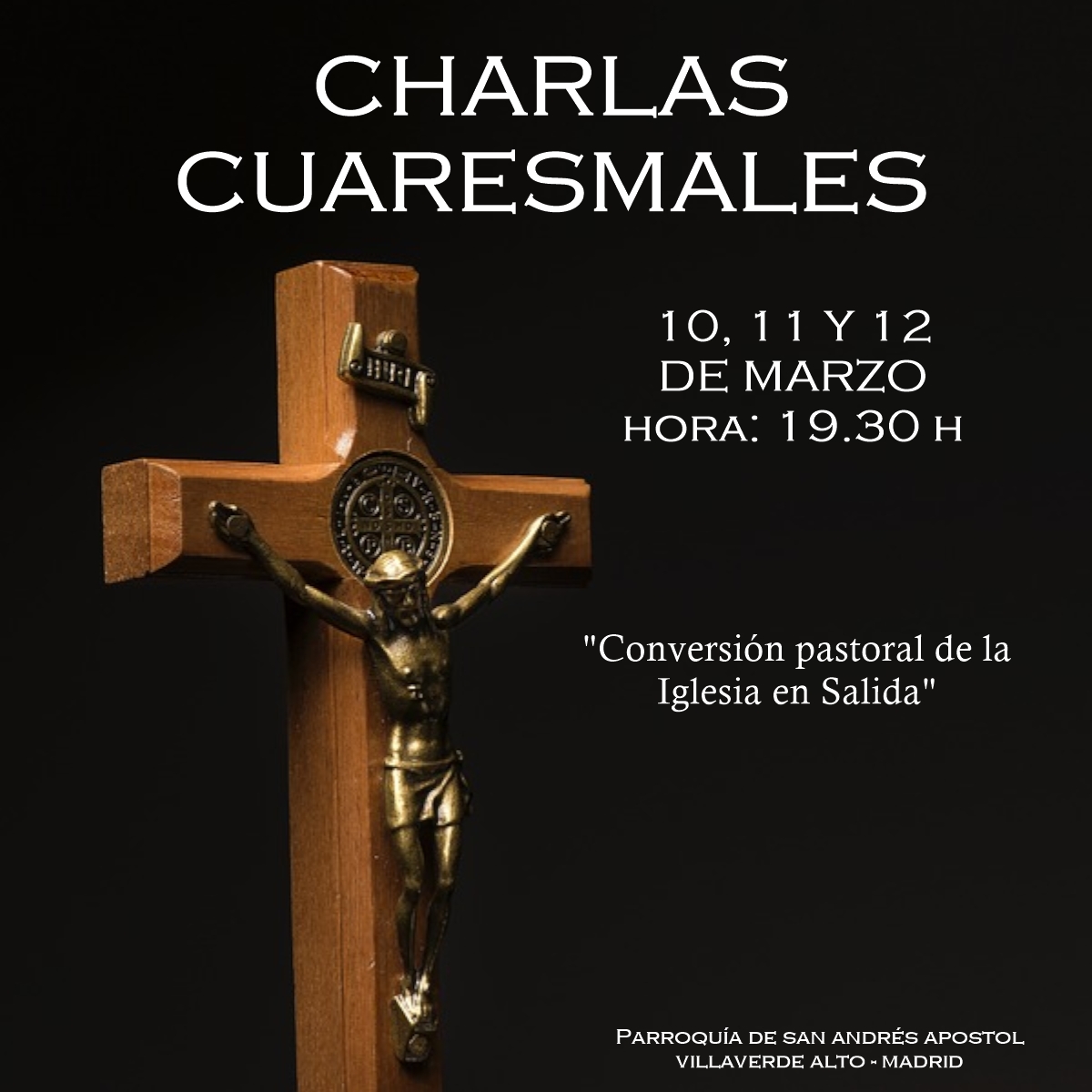 9 de marzo de 2020 Os recordamos que los próximos días 10, 11 y 12 de Marzo, a las 19.30 horas, tendrán lugar en la Parroquia de San Andrés Apóstol de Villaverde Alto-Madrid. LAS CHARLAS CUARESMALES: “Conversión pastoral de la Iglesia en salida”