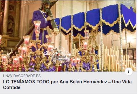 5 de abril de 2020 Hoy Nuestra Presidenta – Hermana Mayor nos deja una breve reflexión para Semana Santa en «Una vida Cofrade». Os invitamos a leerlo.