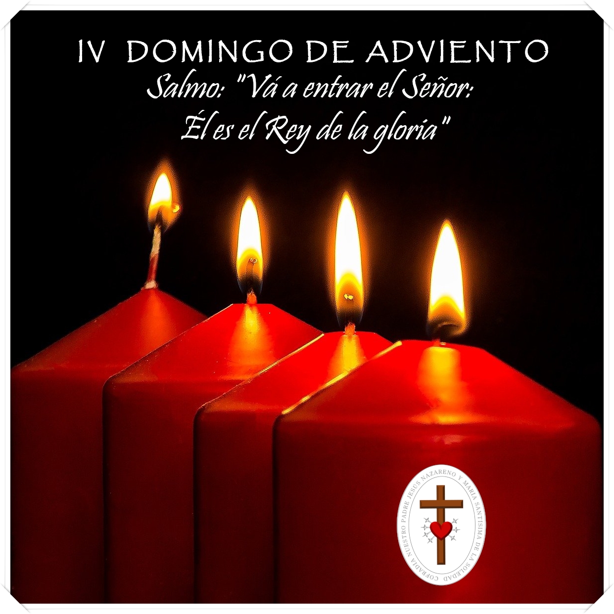 Hoy domingo 18 de Diciembre, celebramos el CUARTO DOMINGO DE ADVIENTO, encenderemos la cuarta vela de la corona, que nos recuerda que la  llegada del Señor es inminente.