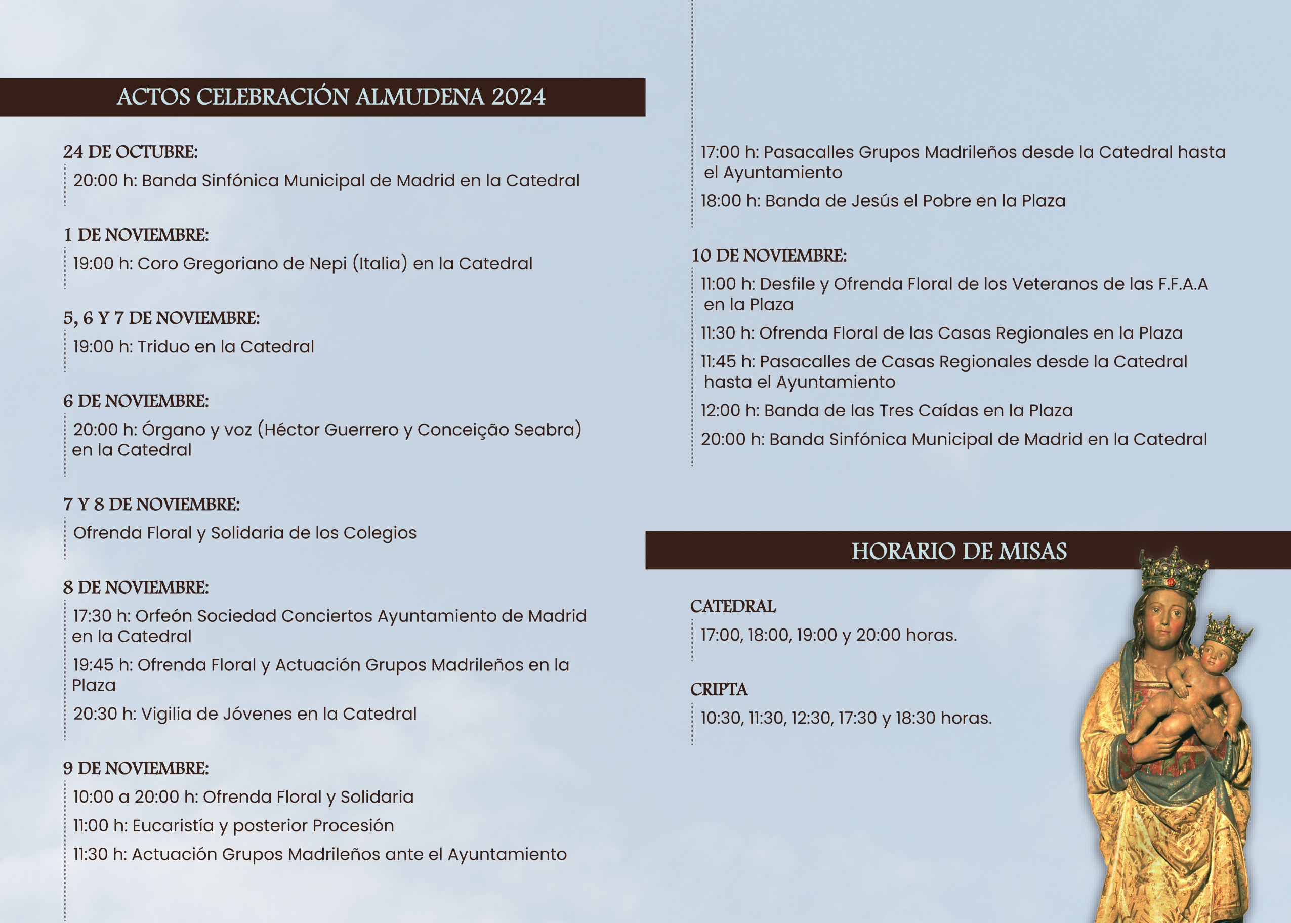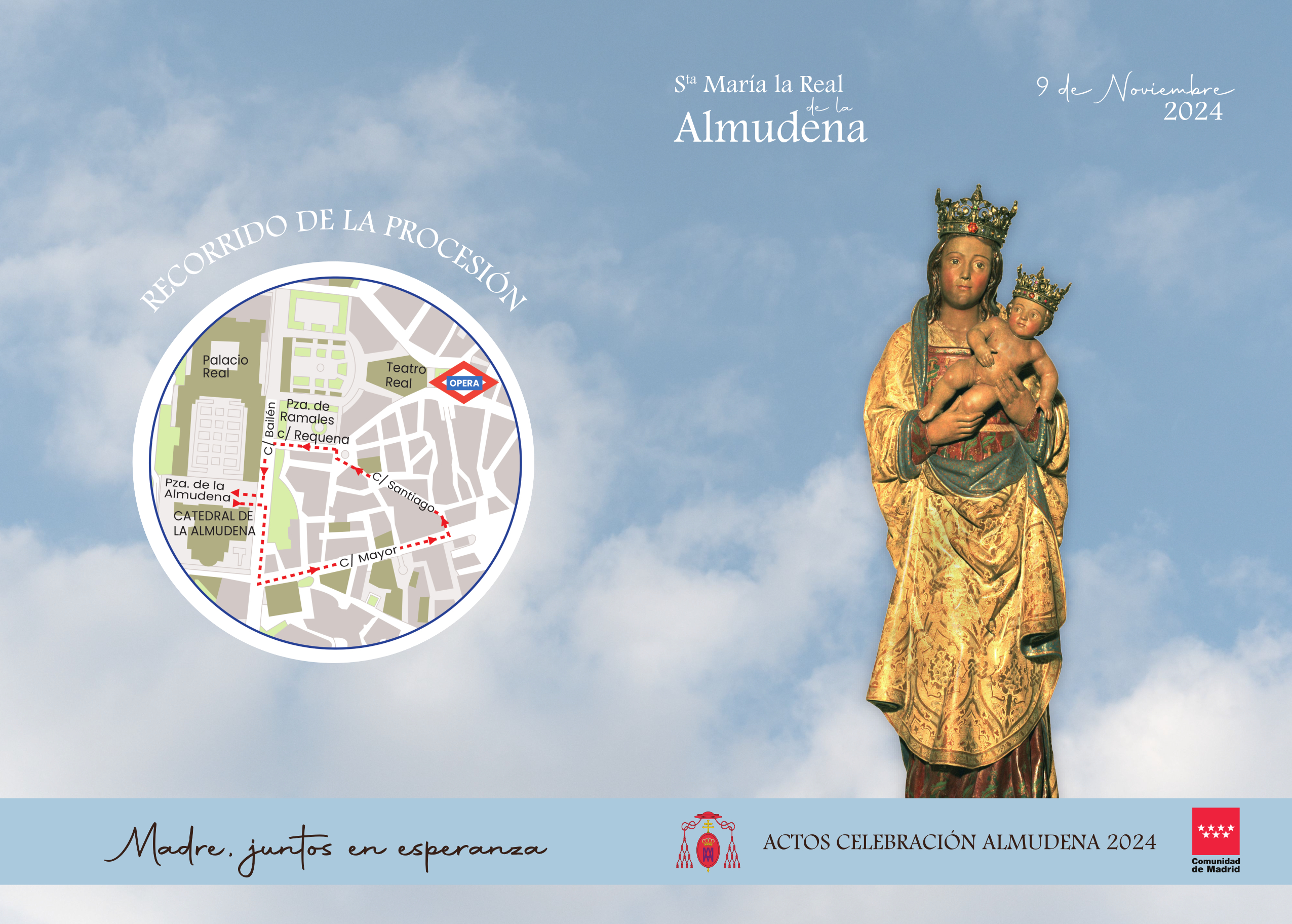 El sábado 9 de noviembre, Madrid honra a su patrona, la Virgen de la Almudena, y la archidiócesis se vuelca en las celebraciones, este año con el lema «Madre, juntos en esperanza».