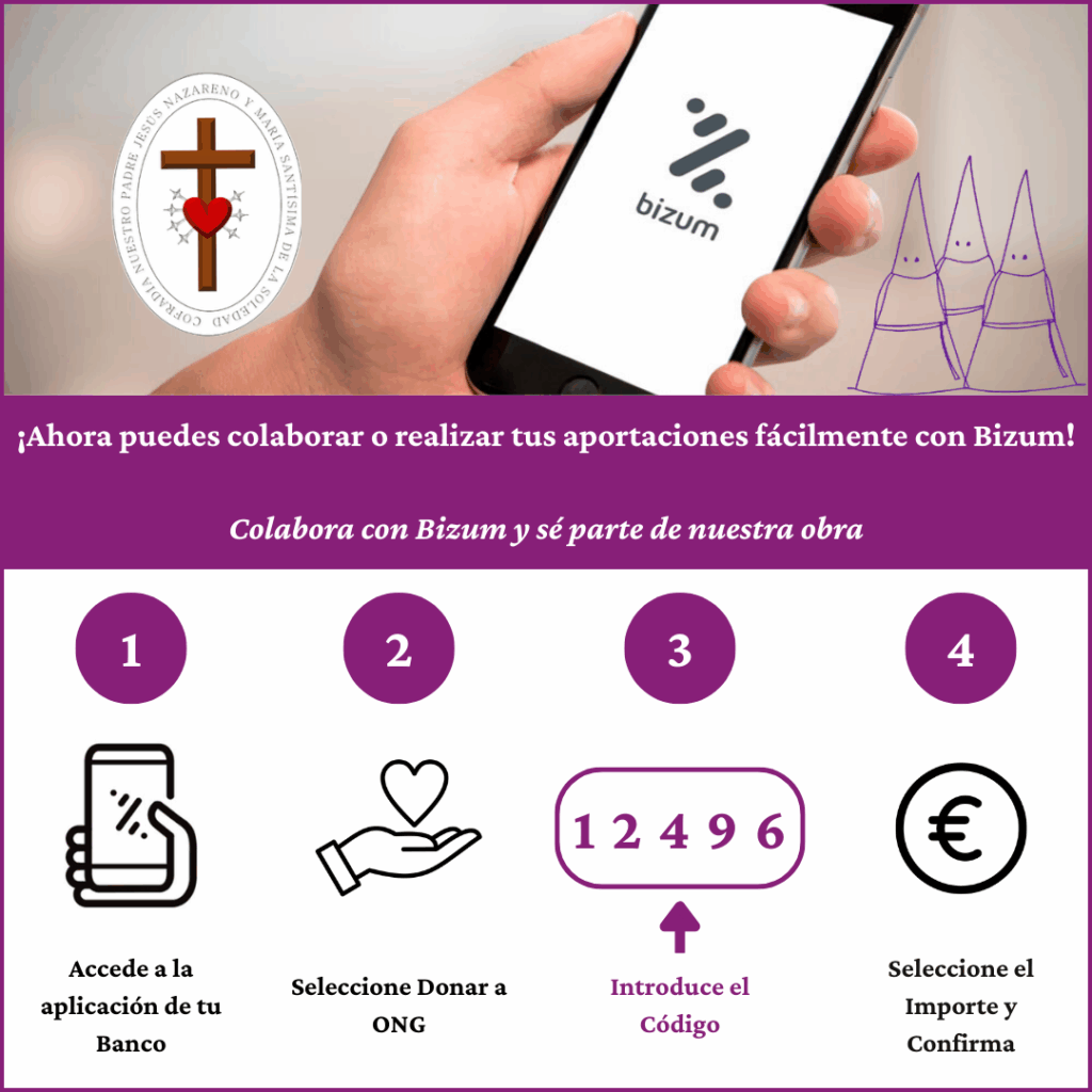 En nuestro compromiso por facilitar las gestiones a hermanos y devotos, la Cofradía ofrece ahora la posibilidad de realizar pagos y donativos a través de Bizum, un método cómodo, seguro y sencillo.