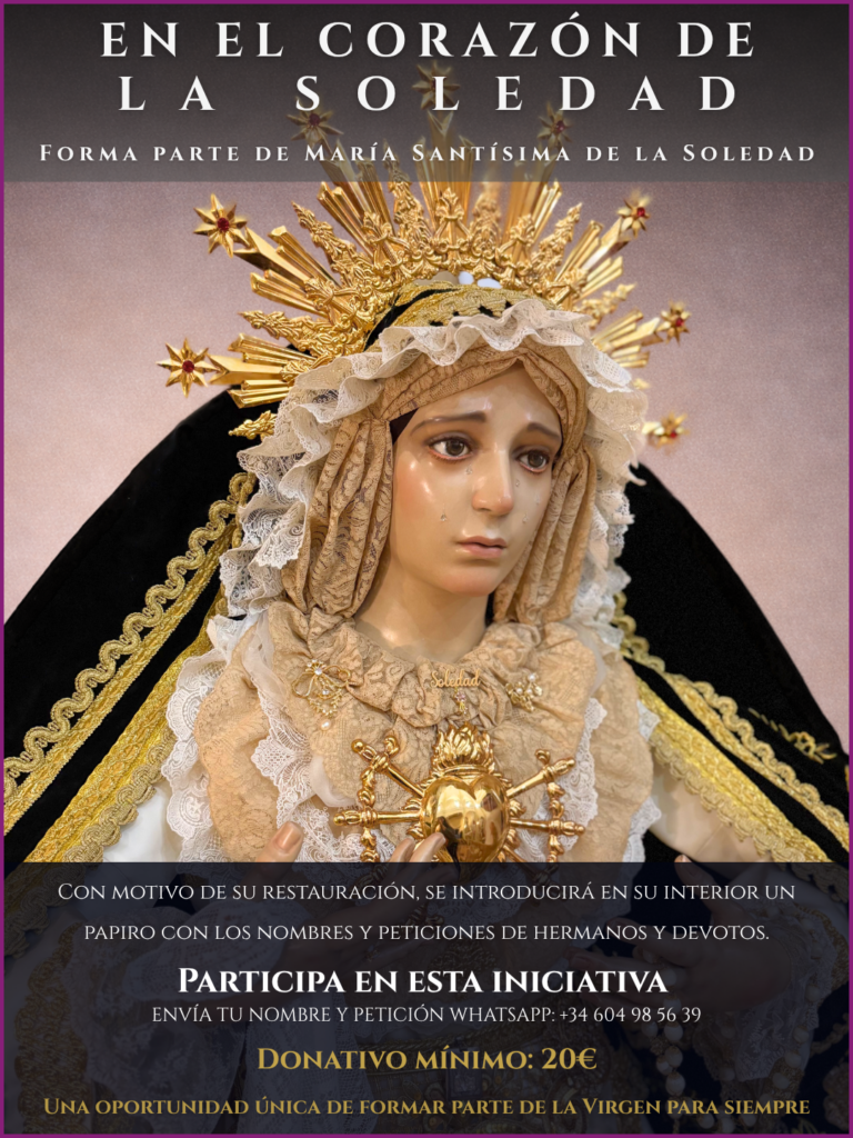Con motivo de la restauración de María Santísima de la Soledad, se introducirá en su interior un papiro con los nombres